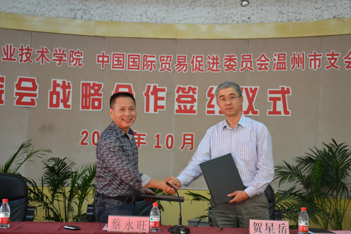 为了促进温州市对外经济贸易发展和中外经济技术合作,提高学院人才培养质量,学院和中国国际贸易促进委员会温州市支会(简称温州贸促会)于10月22日下午在学院多功能厅举行了院会战略合作签约仪式,温州市贸促会领导及相关人员、学院领导、校企合作办和经贸学院有关教师及部分国贸专业学生参加了本次签约仪式。