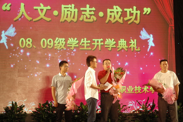 9月4日晚7点,我院隆重举行了“人文 · 励志 · 成功”——2008、2009级学生开学典礼。党委书记、院长何向荣、党委副书记、副院长盖庆武等党政领导班子以及各分院(系部)负责人,2008级、2009级全体师生参加了本次开学典礼。今年我院的开学典礼在内容和形式上做了大胆探索和尝试,无论是从现场布置还是形式内容以及领导讲话等方面较以往有了重大突破。整场典礼采取晚会的形式进行,既展示了我院师生近几年的优秀获奖作品和研发成果,也邀请了温州市知名企业家、我院历届优秀毕业生代表以及学生家长代表等给我院学生讲述了他们创业、择业、就业的经历和看法,使在座学生深受教育和启发。在本次开学典礼上,还举行了我院2009—2010年度“十佳学子”颁奖仪式和“我最喜爱的老师”评选启动仪式,来自汽车与机械学院数控0801班的陈俊等十名同学受到表彰。而今年我院“我最喜爱的老师”评选活动将采取网络投票和现场投票相结合的方式,届时学生可以在学院网站和活动现场为他们喜爱的老师投上宝贵的一票。典礼的最后,何院长做了精彩的主题演讲,强调了创新对高校发展和个人成才的巨大作用。他指出:“没有学校的创新,就没有科技的创新,没有科技的创新,就没有人才的创新。”整场典礼晚会在我院党政领导班子成员上台共同放飞希望之鸽,祝愿我院在创办教育服务型高校的道路上再次腾飞,再筑辉煌之后圆满结束。