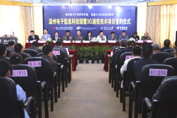 最近,我院内喜事不断,各方媒体纷至沓来:我院大力推动的温州电子信息科技园项目中的“温州电子信息研究院”经温州市人民政府批准正式组建,并分别与中国·忠成数码科技有限公司和浙江大学、中国温州电信等签署了相关合作协议,联手在3G移动通讯技术及专用手机的研发与IT软件开发、微电子、汽车电子新技术等方面开展合作,同时,浙江创意园即将竣工投入使用的省内目前最大秀场也引起了各方的浓厚兴趣,知识产权服务园已经市政府批准建设。这标志着我院在深入学习实践科学发展观活动中提出“服务地方转型升级,促进学院科学发展”的整改措施――“三大园区”项目建设已全部进入实体操作阶段。