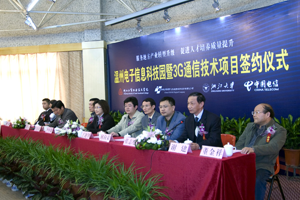 其中主要子项目,一是温州电子信息研究院。该研究院由学院与中国•忠成数码科技有限公司为投资单位、浙江大学为技术支撑单位联合组建。研究院为独立事业法人,主要从事现代通信技术、机器人、集成电路设计、嵌入式技术及汽车电子、IT软件等方向的电子信息技术领域课题研究和技术成果产业化推广等活动,为温州产业升级及企业转型提供技术支撑。