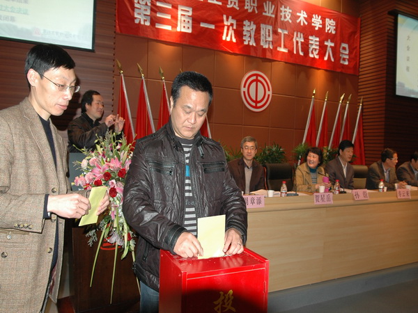 浙江工贸职业技术学院第三届一次教职工代表大会,于2009年2月11日下午-12日上午在学院6号楼学术报告厅隆重召开。杭钢集团工会主席寿云来等及上级领导参加了会议,高度评价了二届工会在工作中取得的成绩。大会分别由学院党委副书记、副院长孙蔚和工会副主席庄秀丽主持。