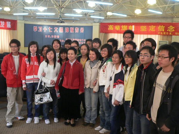 会场上掌声不断,我院学子在和党代表的近距离接触中切身感受到了党的十七大盛况,进一步深刻领会了十七大精神,充分认识了高举中国特色社会主义伟大旗帜的重大意义,肩负起建设和谐社会的历史使命。