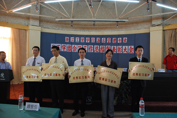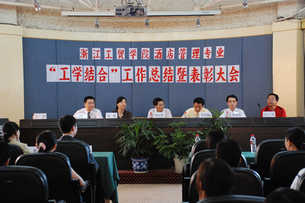 2007年9月27日下午三点半,管理系酒店管理专业“工学结合”总结暨表彰大会在学院多功能厅举行,参会的学院领导有何向荣院长,还有教务处、学生处、校企合作办、高职所及各系部中层干部,并邀请了“工学结合”实践单位(王朝大酒店、维多利亚大酒店、顺生大酒店、万谊商务大酒店及天一角酒园有限公司)的领导与嘉宾,会议由系副书记张勰主持。