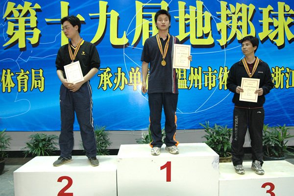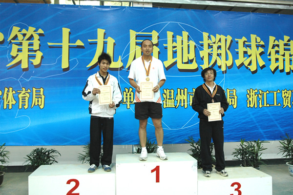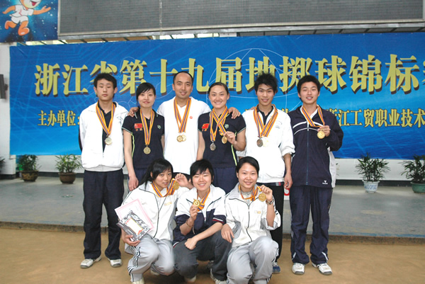 由浙江省体育局主办,温州市体育局、浙江工贸学院承办,全省各地近20支男女代表队参赛的2007年浙江省十九届地掷球锦标赛4月17日在我院结束。经过4天男女团体及各单项的紧张比赛,代表温州市参赛的东道主我院代表队夺得7金5银,金牌和奖牌总数名列各参赛队的首位。其中,王美/郭晓敏组合分别获得女子小金属球女双冠军、大金属球女双冠军,范杉/谢良虎组合获得小金属男双冠军,范杉/李春峰组合获大金属球男子双人抛击冠军,李春峰获塑质球男子单打冠军,范杉获男子单人抛击冠军,郭晓敏获大金属球女子准确抛击冠军,显示了强劲的实力。