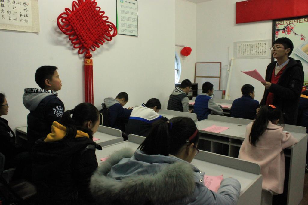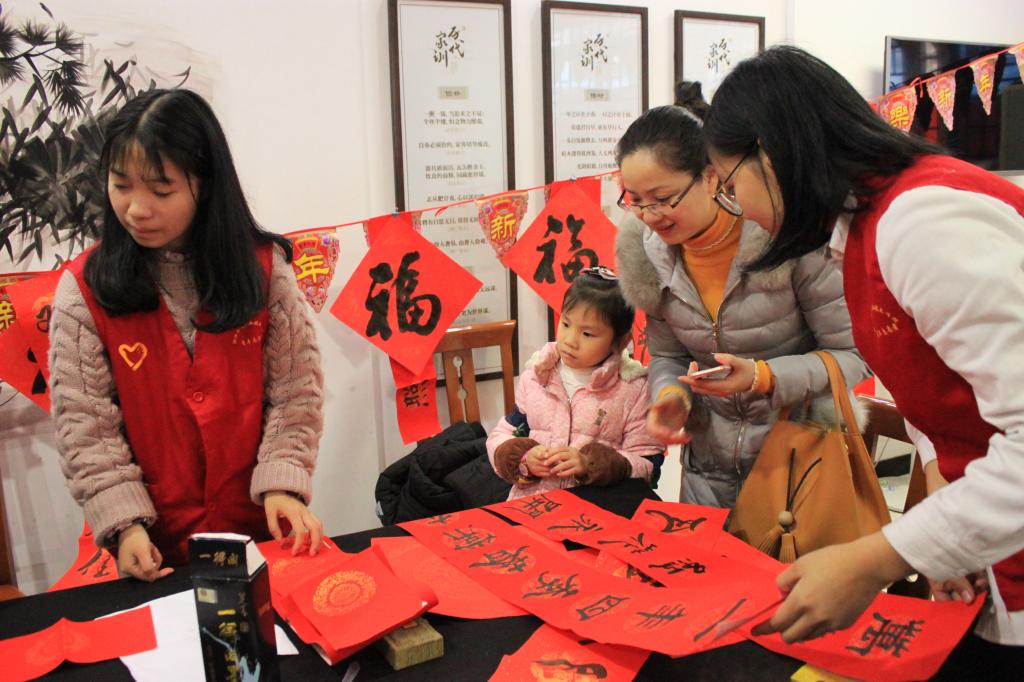 在鹿城区蒲鞋市街道锦园文化礼堂,我院“中国红,福到礼堂”新青年下乡暖冬服务队正在当地开展“迎中国年,送春节红”服务活动。来自学院的15名志愿者在指导老师的带领下,有的现场书写春节对联,赠送给前来参加活动的社区居民,给社区居民送去幸福年;有的同学结合自己的特长,为社区居民拍摄全家福,留下阖家团圆的幸福瞬间,给社区居民送去团圆年;有的同学为社区老年人进行健康义诊,免费量血压,测血糖,给社区居民送去了健康年;有的同学为近80名社区居民子女教授国学,学习弟子规中的“孝、信、礼、义”等知识,有的同学教授社区孩子学习手工衍纸,制作精美的手工工艺品,为他们带去了文化年。活动中,胡剑谨部长在摄影地点与随行人员一起合影留念后,一同慰问各个服务点并询问了服务队员的专业情况、活动时间、活动内容、个人收获等,胡部长高度赞扬了全体志愿者在寒冷的冬日为社区居民所作的服务,并为志愿者们带去慰问品。她希望志愿者们珍惜把握在校实践机会,积极主动深入基层一线,在实践中检验所学、认识社会、砥砺品格、磨练意志。