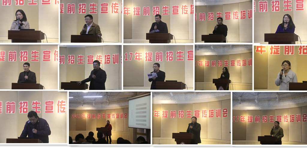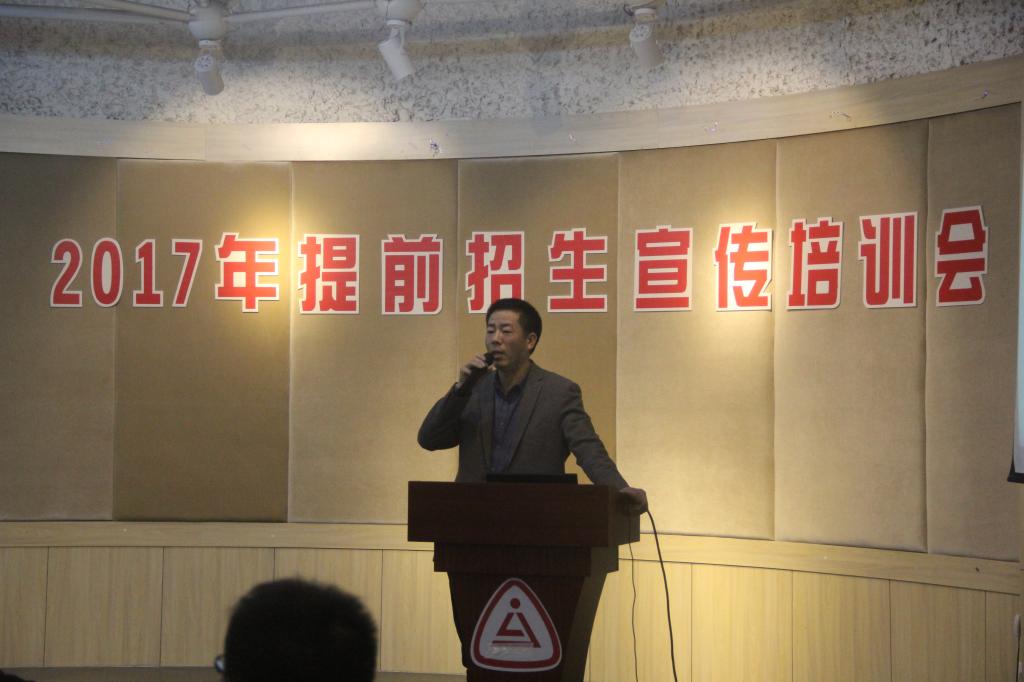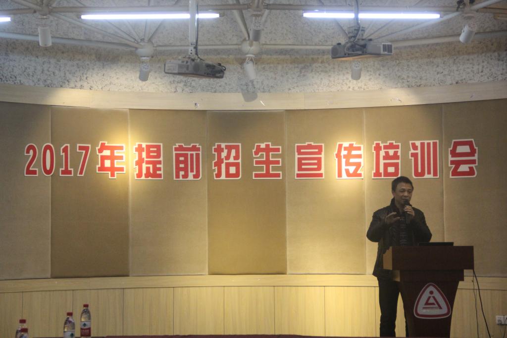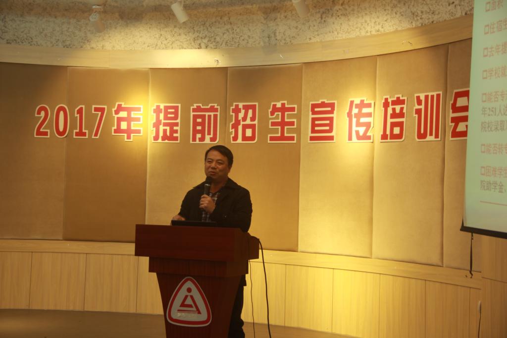 会上,学生处处长林海春解读了提前招生政策及考生咨询问题解答技巧,细致地阐述了提前招生的政策、我院今年提前招生报名条件和如何解答考生关注的问题;教务处副处长石娜对本次提前招生综合测试与转专业管理办法进行了说明;学生处副处长蔡景界介绍了利用互联网平台进行学院特色、专业介绍、学生服务和校友风采等系列的宣传工作。