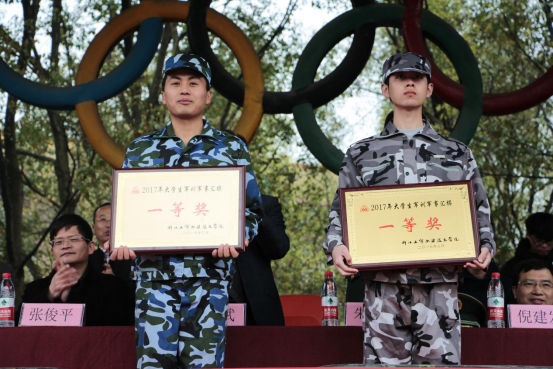 学院党委委员、副院长张俊平作军训总结讲话,他肯定了全体参训人员辛勤的付出和所取得的成果,向承训部队全体领导与教官表示衷心的感谢和敬意,向顺利完成军训任务的全体大一学生表示由衷的祝贺,并对2016级学生今后的学习生活提出了殷切的期望,希望全体同学在学习生活中继续发扬军训中培养出来的艰苦奋斗、顽强拼搏的精神,为实现自己的人生价值而不懈努力!最后,海警二大队副大队长朱宏伟宣读了2016年军训汇操的各项成绩,与会领导为获奖方阵进行了颁奖。