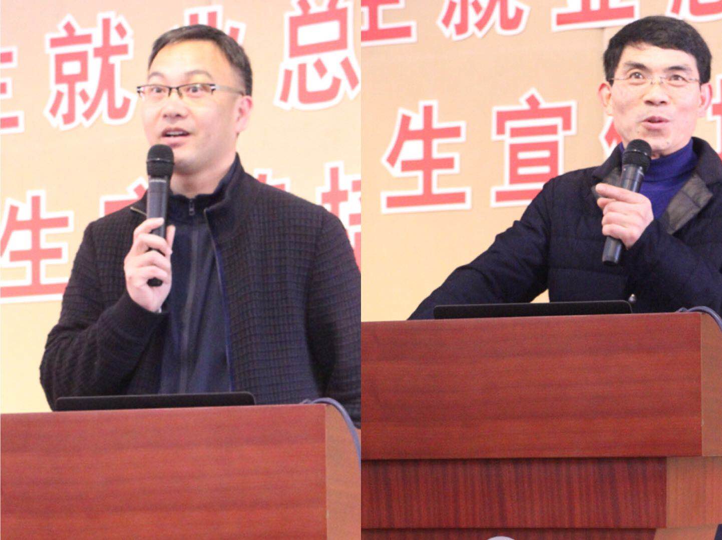 材料工程系书记万登泸老师、人文系专业主任朱浩然老师在会上作招生就业工作交流发言