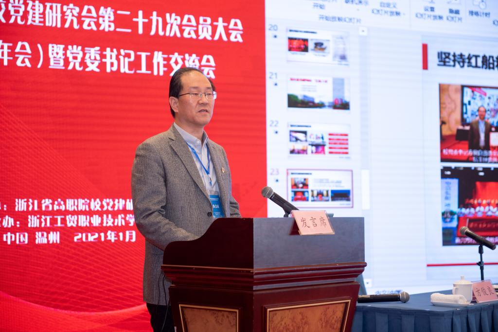研究会学术委员会副主任、浙江工贸职业技术学院党委书记盖庆武,《坚持党建引领 激扬新时代工贸精神,争当“重要窗口”先行者》