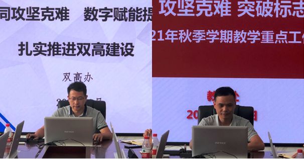 会上,二级学院院长和部门相关负责人分别就国家级教学创新团队培育及建设、课程思政建设、产业学院建设、职业技能大赛组织、专业群国际化办学探索、下半年双高项目建设、精品在线课程建设与应用、教师教学能力大赛备赛介绍、下半年产教融合重点工作等方面进行了汇报交流,学院党委委员、教务处处长贾永枢对2021年秋季学期教学重点工作进行了部署安排。
