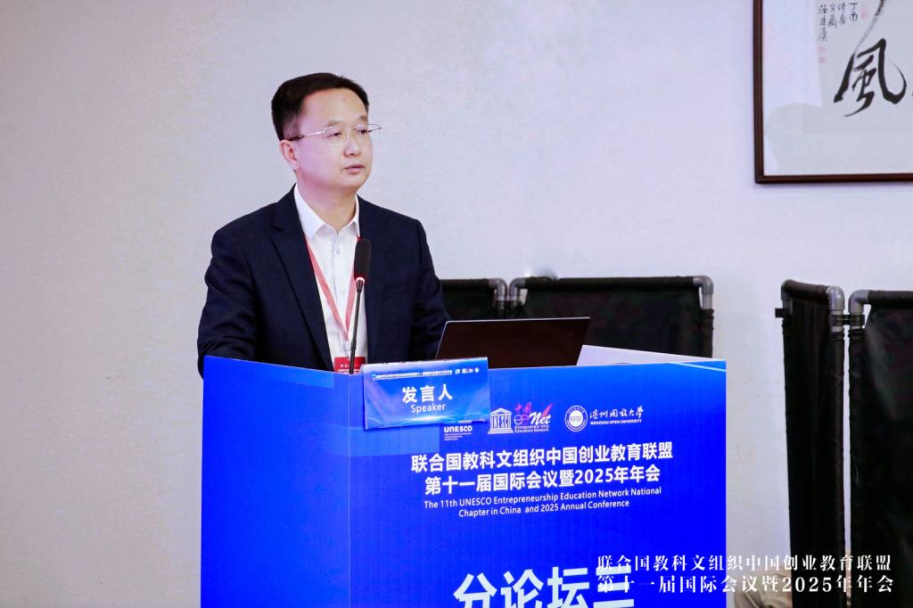 济南工程职业技术学院招生就业处(创新创业中心)处长吴新华分享了《“双高校”建设视域下高校大学生创新创业孵化基地建设研究》,重点介绍了该校“三阶递进、三元联动、三体协同”的双创教育体系构建经验。