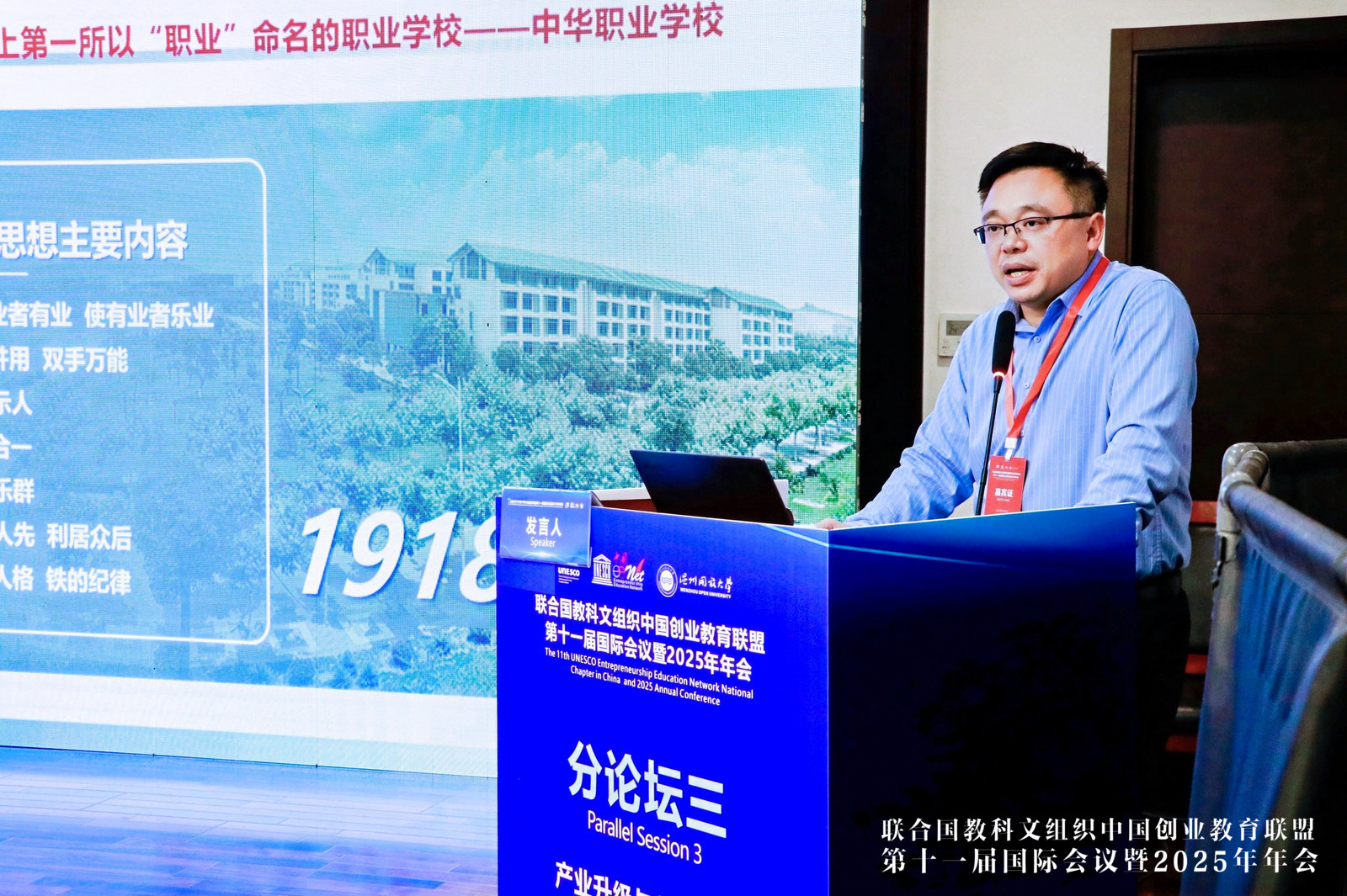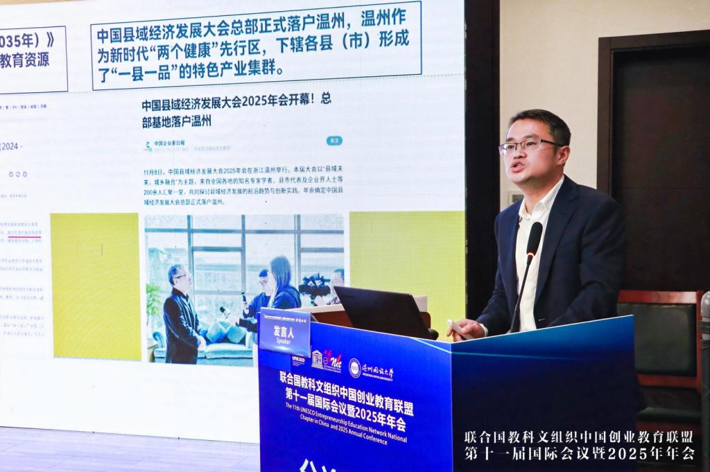 2025年11月15日-16日,联合国教科文组织中国创业教育联盟第十一届国际会议暨2025年年会在温州举办,浙江工贸职业技术学院党委副书记、校长余闯受邀主持第四场全体会议主旨报告环节。期间学校成功承办了“产业升级与创新型高技能人才培养”为主题的分论坛。论坛汇聚了来自全国三十余所高校、企业与研究机构的专家学者,围绕会议主题展开深入研讨。