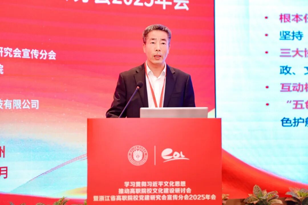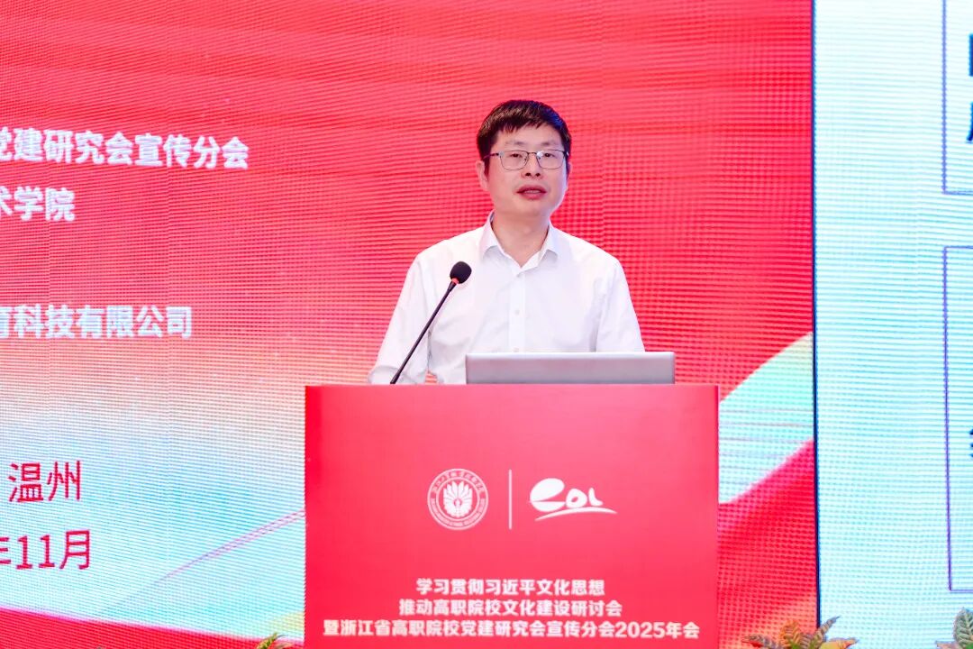 为深入学习贯彻党的二十届四中全会精神、习近平文化思想和省委十五届八次全会精神,推动高职院校切实担负起做好新时代新征程宣传思想文化工作的使命,11月25日-26日,由浙江省高职院校党建研究会宣传分会、浙江工贸职业技术学院(以下简称浙工贸)主办,中国教育在线、北京中教互联教育科技有限公司协办的学习贯彻习近平文化思想推动高职院校文化建设研讨会暨浙江省高职院校党建研究会宣传分会2025年会在温州成功举行。