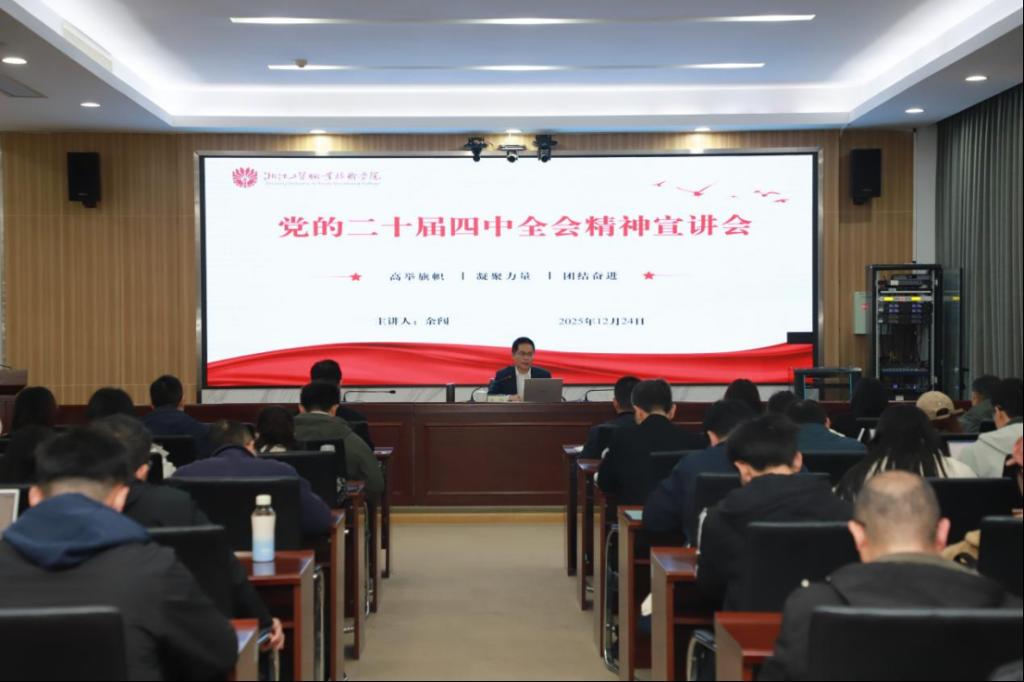 宣讲会上,余闯围绕党的二十届四中全会的重大意义与核心要义,结合国家“十四五”收官与“十五五”谋划的宏观背景,进行了多维度解读。他指出,党的二十届四中全会是在我国发展关键节点召开的一次重要会议,其擘画的蓝图对教育事业,特别是职业教育的高质量发展具有根本性的指导意义,这对于以培养高素质技术技能人才为根本的工贸学院而言,是方向性的引领和战略性的机遇。