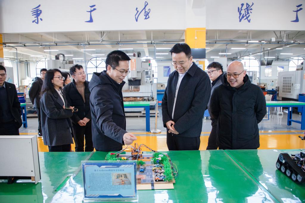 调研期间,温州大学调研组实地参观了学校校史馆、光电制造学院实训中心,详细了解学校办学历史沿革与办学成就、国家双高智能光电制造技术专业群的实训设备、教学运行以及产教融合等情况。