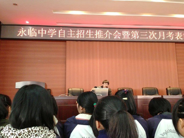 应永嘉永临中学邀请,1月16日下午,学生处招生办联合信息学院赶赴永嘉永临中学开展自主招生及高考政策解读报告会。