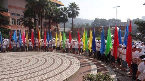 在出征仪式上贺院长做了动员讲话,他指出今年暑期社会实践结合经济社会发展和群众的实际需求,针对性强。如学院“网购三部曲”社会实践队通过与温州都市报合作开展教老年人学网购志愿服务活动,原先计划招收中老年人学员45名,报名当天已超过120人,大大丰富了社区中老年人的文化生活。同时此次暑期社会实践区分重点队伍和一般队伍,其中反邪教社会实践队伍受省里立项资助,“红马甲教中老年人学瓯绣”等5支社会实践队伍受温州慈善总会立项资助,保护母亲河等5支社会实践队伍受温州团市委立项资助。