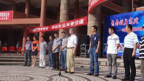 随后,学院领导、学生处、各分院系领导为各社会实践队授旗,全体实践队员代表集体宣读了出征誓言。