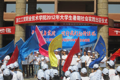 贺院长希望同学们全身心投入到社会实践的活动中去,深入社会、深入基层、了解社会、认识社会,把创新思维和社会实践紧密结合起来,以坚定的信心、足够的耐心、刻苦的决心,办实事、办好事、勇于探索、敢于创新,磨砺意志跟党走,为人民服务,为“三生融合幸福温州”建设做贡献。贺院长还叮咛参加社会实践的学生一定要把个人自身的安全放在第一位,在殷切的期盼、百般的牵挂中,贺院长宣布2012年浙江工贸学院大学生暑期社会实践正式拉开序幕。