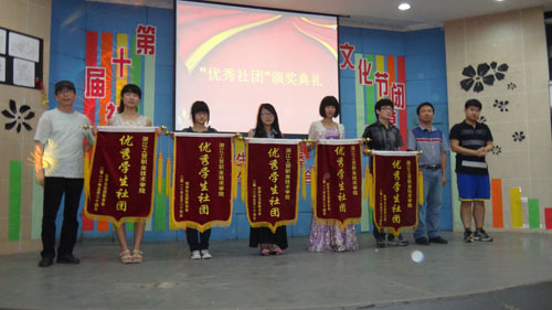 闭幕式上对在本次文化节中表现出色的优秀社团以及优秀志愿者颁发了奖项。其中演讲与口才协会、武术协会等五个社团获得了2012年度“优秀学生社团”的称号;刘梦、翁文杰等六个同学荣获了浙江工贸职业技术学院“爱心家教”优秀志愿者的光荣称号。