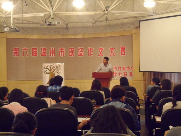 第六届温州市高校现场作文大赛由我院团委、温州市作家协会主办,我院学社联清墨坊文学社承办,温州大学学生社团联合会、温州医学院学生社团联合会、温州职业技术学院学生社团联合会、温州科技职业学院学生社团联合会、浙江东方职业技术学院学生社团联合会和温州广播电视大学学生社团联合会协办。