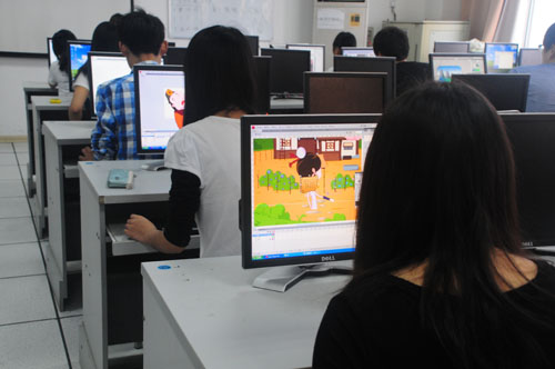学生们在认真制作FLASH