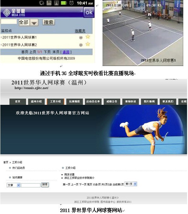 近日,2011年首届世界华人业余网球赛在浙江工贸职业技术学院顺利举行。浙江工贸职业技术学院和中国电信温州分公司作为主要协办单位共同承担本次赛事的信息化工作。