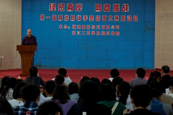 为进一步推动经贸类专业教学改革,给广大学生提供更多新型的工学结合平台,近日,经贸学院与福建两岸经贸有限公司联合举办首届两岸网销手金店面大赛,启动会于9月26日下午在学院阶梯教室隆重举行。