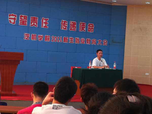 9月17日下午,汽机学院11级新生始业教育大会在阶梯教室隆重召开。出席本次会议的有汽机学院书记冯士活老师,辅导员曹大辉、李艳老师,11级全体班主任老师,以及11级全体新生。