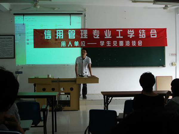 深圳广发证劵公司作为我院管理学院工学结合的合作单位,与我院保持着良好的合作关系。为实现了工学结合的双向选择,为用人单位和学生提供交流沟通的平台。管理学院于9月21日组织2010信用管理专业的学生举办了一场深圳广发证劵与学生的见面会,会议由管理学院院长潘毅主持。见面会邀请证券行业的资深人员蒋娜为同学们详细地介绍了金融行业的发展历程以及未来的发展趋势,同时也从证券行业所需要的知识结构、专业技能和个人综合素质等方面让同学们增强了对自己、证劵行业和社会的认识,帮助同学们更加合理地安排自己的职业生涯规划。