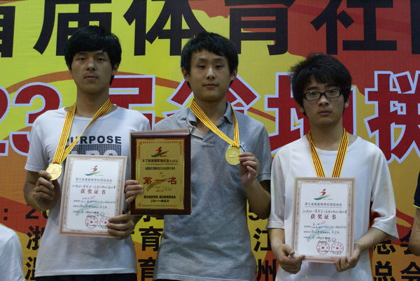 经过三天的紧张角逐,各项目奖牌被强队瓜分。其中,代表温州市出战的我院代表队凭借拥有多位世界及全国冠军的优势,分别夺得塑质球男子团体第一名、女子团体第四名;单项比赛中,我院选手范杉夺得大金属球男单连抛第一名、李春峰获男单准抛第一名、世界冠军郭晓敏获女单准抛第一名、女单连抛第二名;范杉/李春峰获男双连抛第一名、陈 杰/董大模获塑质球男子双人第二名,张维明获男子塑质单人第二名,展示了我院在地掷球项目上的强大实力。
