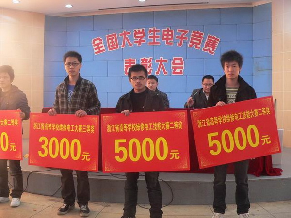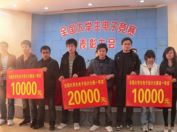 09年电子系在代表学院参加全国大学生电子设计大赛中,我系应电0701班的单剑龙、吴观均和钟叶丽三人团队制作的《模拟智能路灯控制系统》获得全国一等奖,倪维号等两组同学分别获得浙江省全国大学生电子设计大赛一等奖,应金云等同学分别获浙江省高等学校职业技能大赛维修电工比赛二等奖、三等奖;吕巧媚等同学获浙江省电子产品设计和制作竞赛三等奖;谢德雁、应金云分别获温州市“亚龙杯”维修电工和机电一体化技能竞赛二等奖。