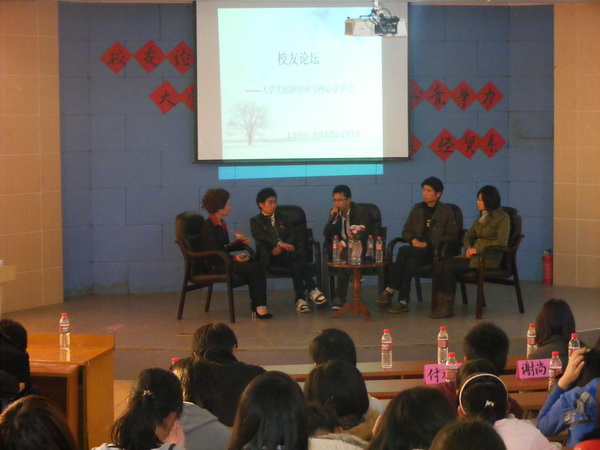 论坛以访谈的形式展开,主持人围绕如何提高大学生创新创业与核心竞争力主题,向优秀校友进行提问。四位校友结合自身的工作、创业经历给同学现身说法:如01级市场营销专业的谢尚芽校友讲到大学期间的学生会工作经历让他在工作备感受用,告诉同学们要珍惜大学生活;03级的商务英语专业的卢博宇校友,用幽默诙谐的语言讲述了自己大学的“郁闷、迷茫”到现在的“坚定、自信”的成长过程,告诉同学们要学好专业知识,打好基础功底是提高核心竞争力的关键;04级国际经济与贸易专业的付水琴校友就国贸专业的一些学习方法、求职、工作经验与同学们一起分享;06级电子商务专业的叶金盘校友是第一个经贸系留校创业的学生,与同学们探讨了在校期间的创业准备、如何创业等问题。最后环节的现场学生和校友互动交流,把论坛推向高潮。