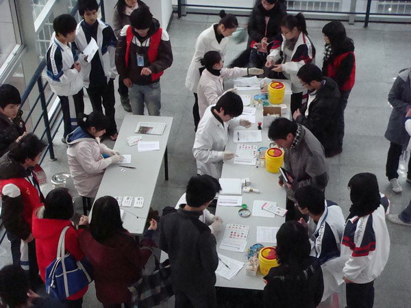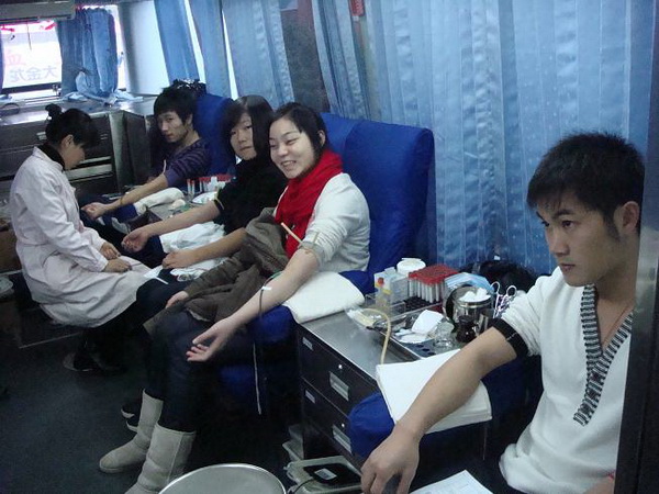 2009年年末,学院献血者俱乐部在6号教学楼前开展“以生命的方式,传递奉献”无偿献血活动。