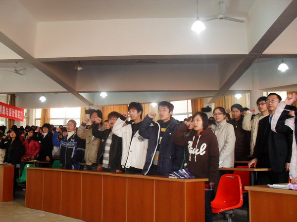 2010年1月12日,我院诚信考试动员大会在阶梯教室隆重举行,会议由学生处吴上遥老师主持,学生处处长王春柳老师以及各系书记等出席了会议并分别作了讲话。参加诚信考试的十四个班级的学生齐聚一堂,共同参加本次会议。