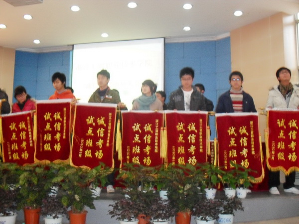 “诚信考场”试点自推出以来,受到了我院师生的一致认可。去年我院有八个班级光荣的成为了“诚信考场”试点班级,并顺利的通过考试,取得了优异的成绩。本学期对“诚信考场”试点班级活动加以推广,鼓励更多的班级参加“诚信考试”活动。经各班级踊跃报名,各系部、学生处严格审核,我们最终确定了会计0901班、商务英语0902班以及应刷技术0901班等14个班级为“诚信考场”试点班级。