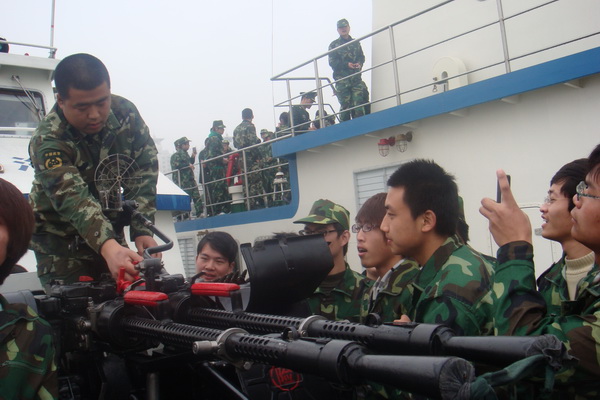 2009级学生军训已顺利结束。在学院有关部门和海警部队的精心谋划、合理安排下, 我院3200余名学生参加了队列训练、内务整理培训、条令学习和集中训练等,圆满完成了军训任务。值得一提的是,这次军训还增加了一项新的内容,—— 组织学生参观海警舰艇。