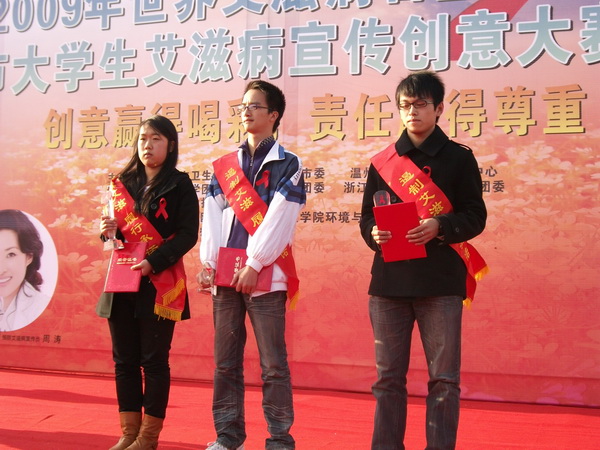 12月1号,由温州市卫生局、共青团温州市委、温州市疾病预防控制中心主办的第22个世界艾滋病日宣传活动暨温州市大学生艾滋病宣传创意大赛颁奖典礼在温州大学隆重举行。此次活动由温州大学、温州医学院团委、浙江工贸职业技术学院团委与温州职业技术学院团委四方协办。