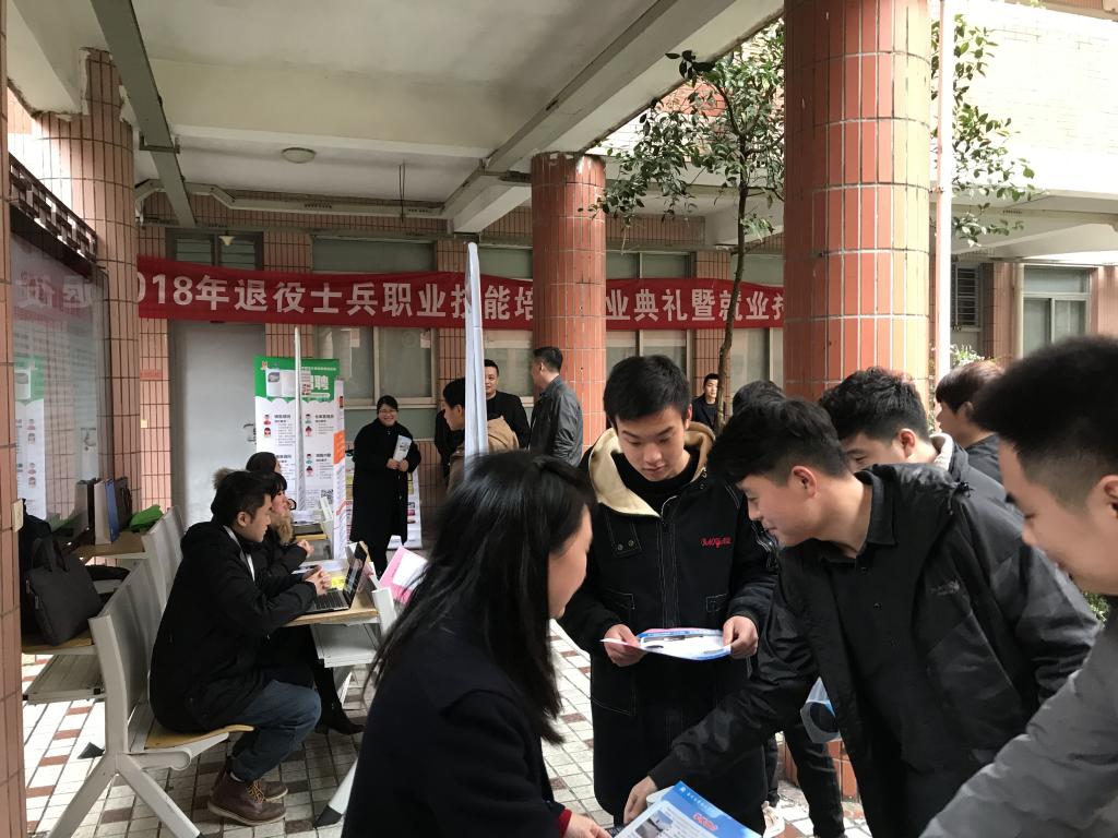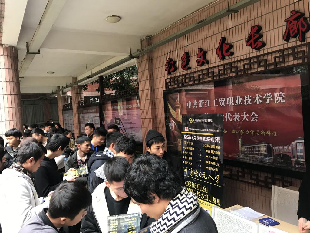 会后,浙江工贸职业技术学院培训中心组织了温州市退役士兵就业招聘洽谈会,为本期退役士兵学员的再就业牵线搭桥。参加这次就业招聘会有温州聚虎健身教练培训基地、中移铁通有限公司温州分公司、温州简配供应链有限公司、温州喜来登酒店、红旭集团股份公司、浙江一鸣食品股份有限公司、广东德律信用管理股份有限公司温州分公司、温州和平医疗投资管理有限公司、21世纪不动产、温州交运集团、江南阀门有限公司、平阳县保安服务有限公司、杭州联华华商集团有限公司温州分公司、中国太平洋财产保险股份有限公司温州分公司 等14家单位。本次培训初显成效,就业招聘会上退役士兵学员踊跃参加招聘咨询,现场气氛热烈,学员们纷纷与各企事业单位沟通洽谈,找到自己喜欢的工作。