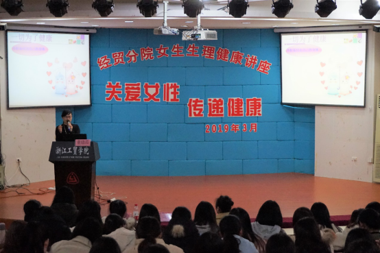 为庆祝“三八”妇女节,增强女大学生的自我呵护和自我关爱意识,经贸分院于3月8日晚18:30在阶梯教室成功举办了以“关爱女性 传递健康”为主题的女生生理健康讲座。此次讲座有幸邀请到温州市人民医院妇产科副主任医师董晓霞女士担任主讲。经贸分院团总支书记吴妮妮,团总支副书记钱余敏及经贸分院近400名女生参与了此次讲座。