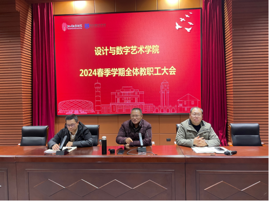 为确保2024年春季学期各项工作开好局、起好步,2月28日下午,设计与数字艺术学院在6号教学楼学术报告厅举行2024年春季学期全体教职工大会,学院领导以及全体教职工参加会议,会议由学院党总支副书记张云帆主持。