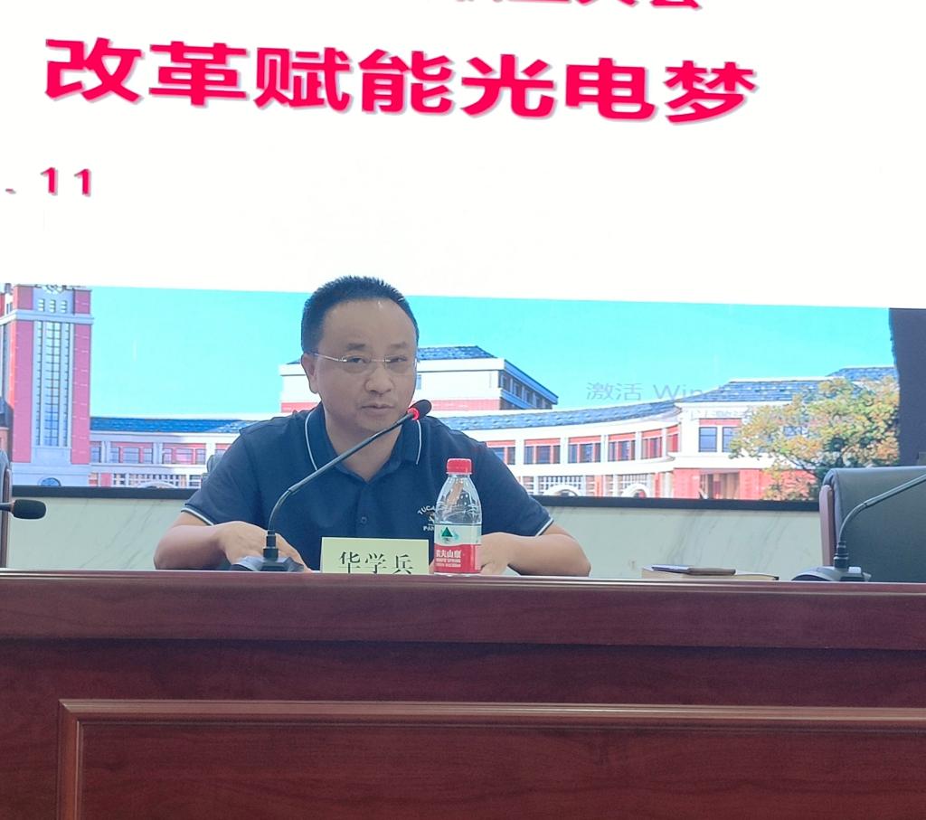 光电制造学院副院长华学兵对分管工作进行了发言,他强调了新学期重点工作要落到强化服务意识、建设双高任务上来,并做好其它重点工作。