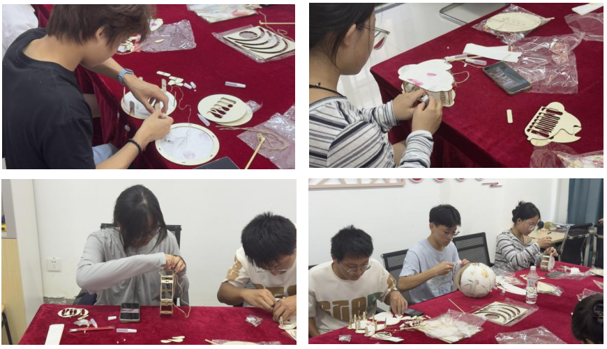 活动中,同学们各自协作相互配合,学生干部也游走于制作区,帮助同学们组装框架、调整造型、安装灯饰,确保每个人都能顺利制作出满意的灯笼。现场气氛轻松融洽,一盏盏各具特色的创意灯笼在同学们手中逐渐成型,展现了丰富的想象力。