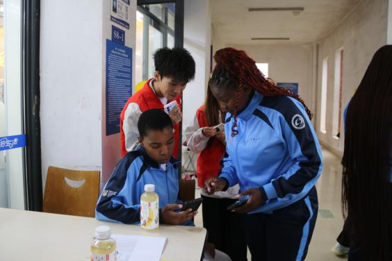 在新生报到处,绿啄志愿者分工明确、秩序井然,有序协助南非新生完成入住登记。从耐心核对姓名、学号、宿舍房间号等关键信息,确保流程准确无误;到针对语言障碍,提前准备中英双语指引纸张,同步启用手机翻译工具辅助沟通。全程高效顺畅,让新生在轻松氛围中快速完成报到手续。