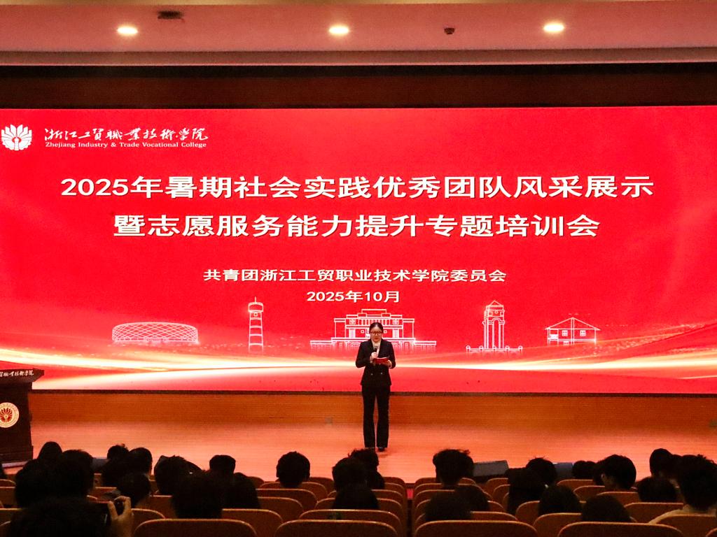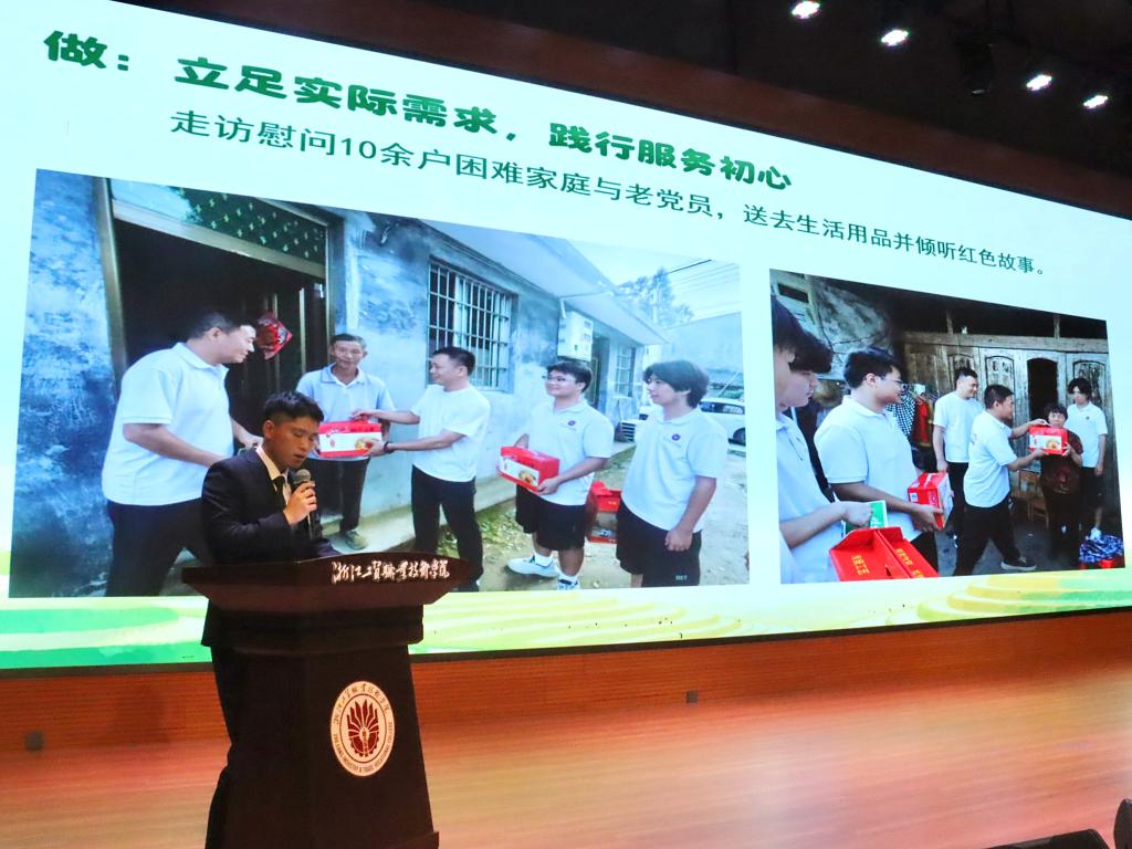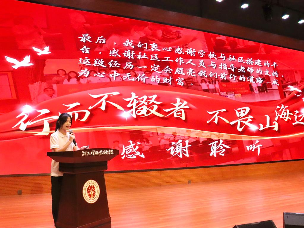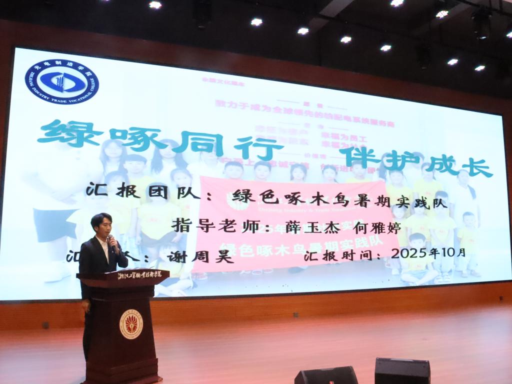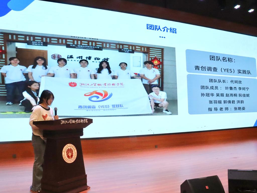 2025年暑期,学校共组织54支实践队,600余名工贸学子奔赴四川阿坝,温州鹿城区、瓯江口、永嘉县、平阳县等地,开展理论普及宣讲、党史学习教育、乡村振兴服务、共同富裕实践调研、家燕归巢实践等特色活动,成效显著。活动现场,6支优秀的实践团队通过PPT汇演展示了他们的实践成果与深刻感悟。
