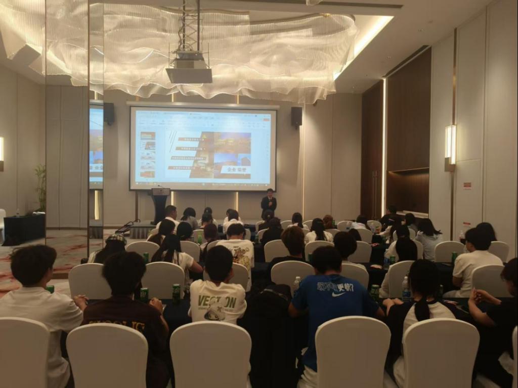 23级优秀实习生陈洋学长的朋辈分享则拉近了理论与实践的距离。他结合自身在酒店的实习经历,从岗位适应、技能提升、跨部门协作等实际问题切入,生动解读了开元集团的人才培养体系如何助力实习生成长,并针对新生关心的职业规划给出具体建议,鼓励学弟学妹们夯实专业基础、主动拥抱实践。