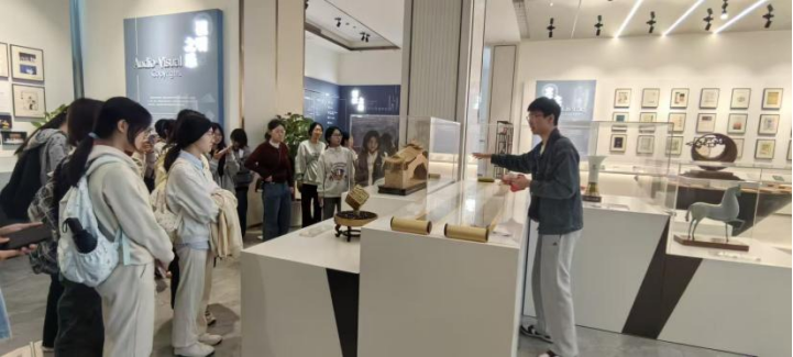 温州版权馆陈列着精美的瓯绣、黄杨木雕等温州传统非遗作品,还有时尚的服装设计、工业产品设计,新兴的软件、网络文学等具有温州特色的文学艺术作品。在参观中,馆员和朱致玮老师对它们进行一一的讲解,同学们理清了版权制度随时代变迁而不断发展的脉络,深刻理解版权作为激励创新的的“动力源”的意义。
