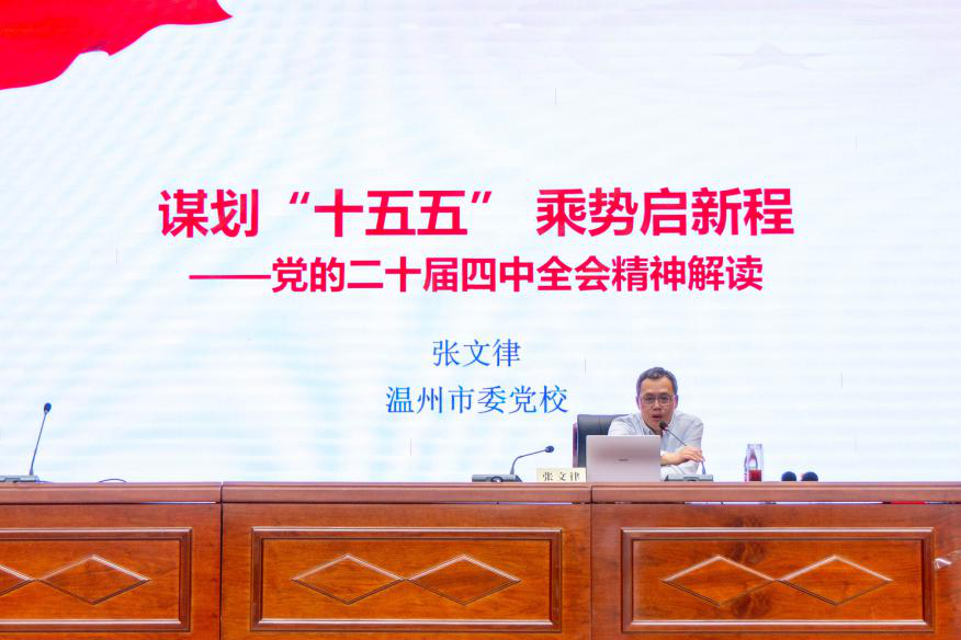 同时,中共温州市委党校经济学教研部张文律以《谋划‘十五五’ 乘势启新程——党的二十届四中全会精神解读》为主题,结合习近平总书记关于强国建设、青年担当的重要论述与“十五五”规划宏伟蓝图,从国家发展大局与青年成长实际出发,引导全体发展对象深刻领会四中全会精神核心要义,深刻认识青年大学生在新时代的责任与使命。