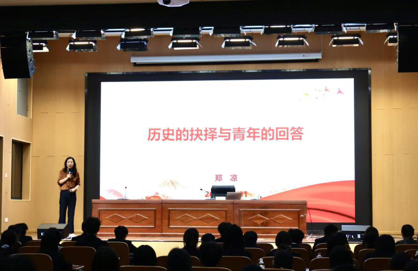 培训班上,学校党委委员、组织部(人才办)部长郑凉以《历史的抉择与青年的回答》为主题,结合新时代青年的理想与信念,用当代青年才俊在创新领域的探索等详实案例与真挚话语,深刻阐释了创新和奋斗是青春最亮丽的底色。在国家大力发展新质生产力的当下,她鼓励青年要主动打造个人核心“生产力”,立志做有理想、敢担当、能吃苦、肯奋斗的新时代青年。