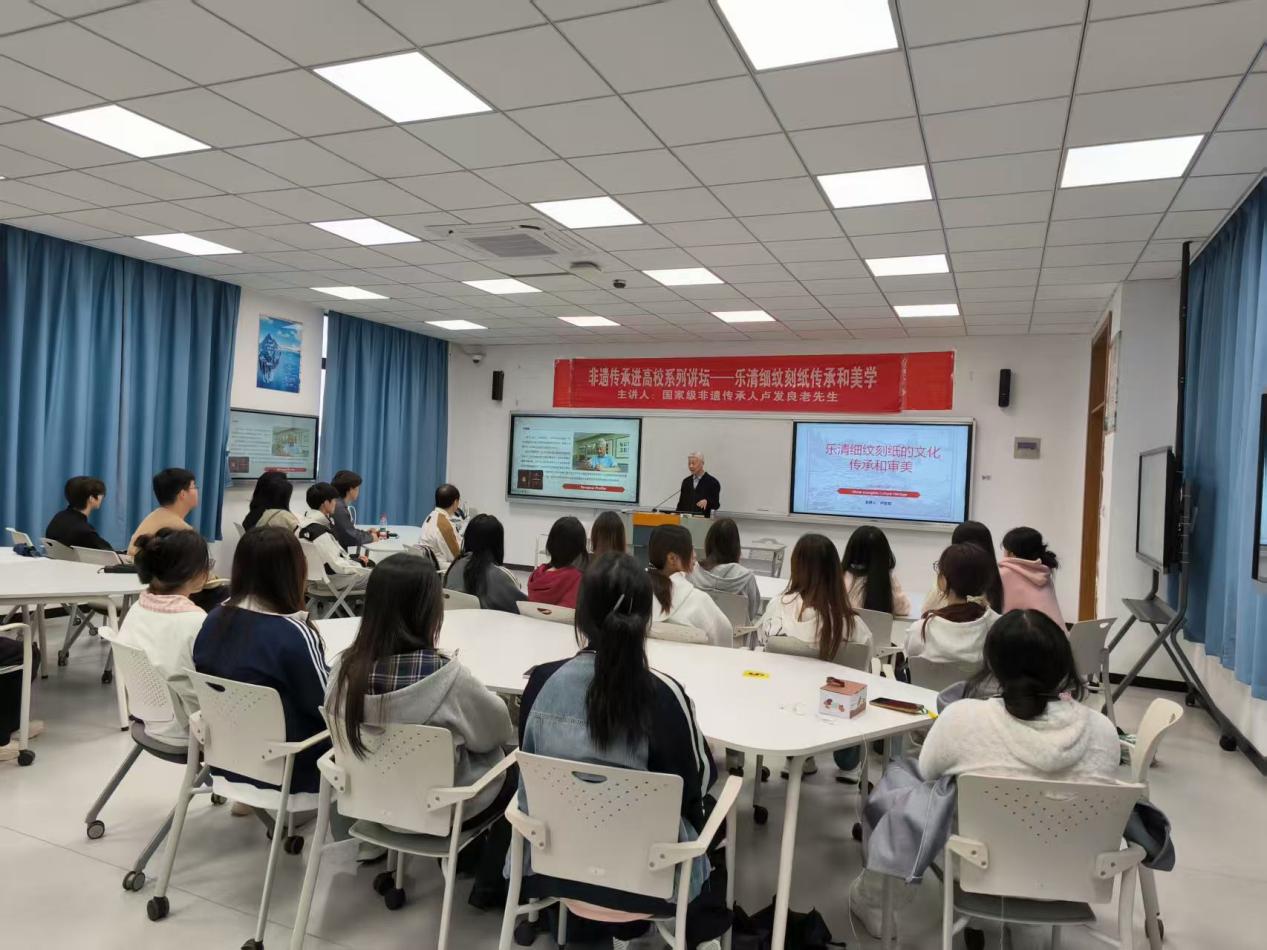 10月28日下午,“非遗传承进高校系列讲坛——乐清细纹刻纸传承和美学”在我校A312智慧教室顺利举办。国家级非遗传承人卢发良老先生担任主讲人,与设计与数字艺术学院工业设计专业师生共同探寻细纹刻纸的历史脉络与美学魅力。